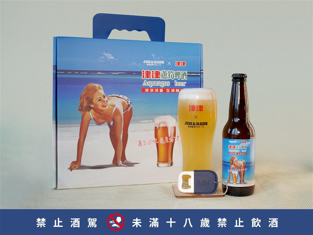 宜蘭的吉姆老爹啤酒工場與老字號飲料品牌津津合作,聯手打造全新的「蘆筍啤酒」;透過吉姆老爹小麥啤酒的私房酒譜結合津津蘆筍汁招牌配方,打造顛覆消費者過去經典口味印象的味蕾!