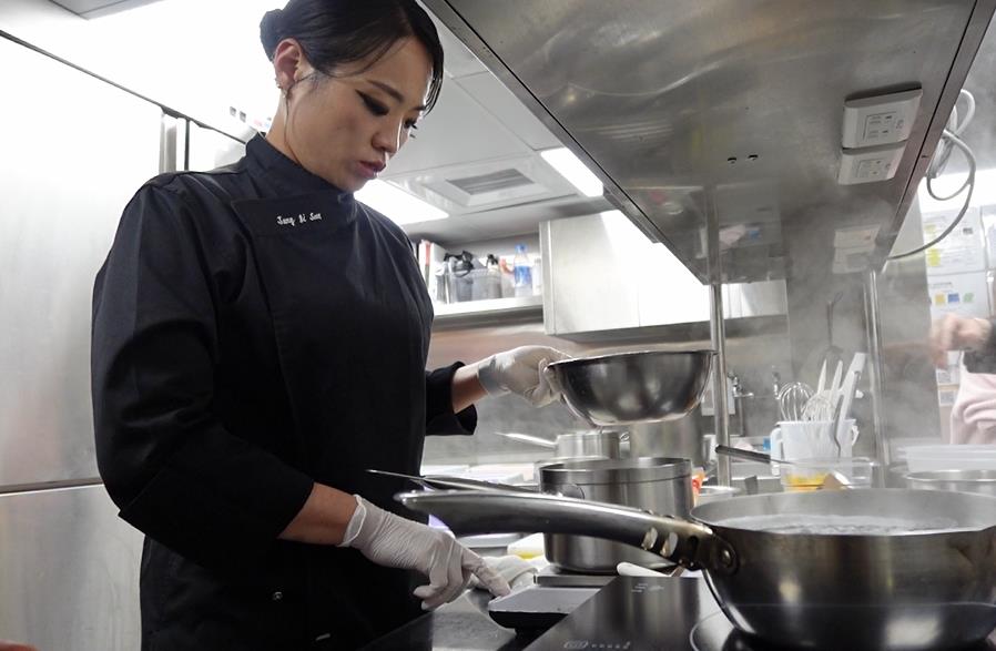 韓國知名實境料理節目《黑白大廚》風靡全台,而「港點女王」鄭智善在節目中的表現更是圈粉無數,在節目中製作〈乾蘿蔔纓拔絲黑醋炸肉塊〉時,展現高難度「拔絲」技巧,華麗吸睛且創意十足。