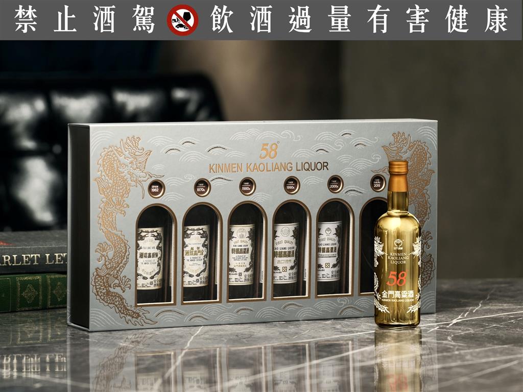 58度金門高粱酒自1962年問世以來,用一甲子的歲月陪伴台灣人走過無數日常,隨著時光的推移,金高的經典風味早已深植人心,一張張封存著時代記憶的歷代酒標也成為許多藏家爭相收藏的焦點。黑松公司攜手金門酒廠精心打造限量「58白金龍袖珍時光寶盒」,一次集結歷代5款白金龍酒款設計,將散落在六十餘載歲月中的珍貴史料,完整濃縮於禮盒內。