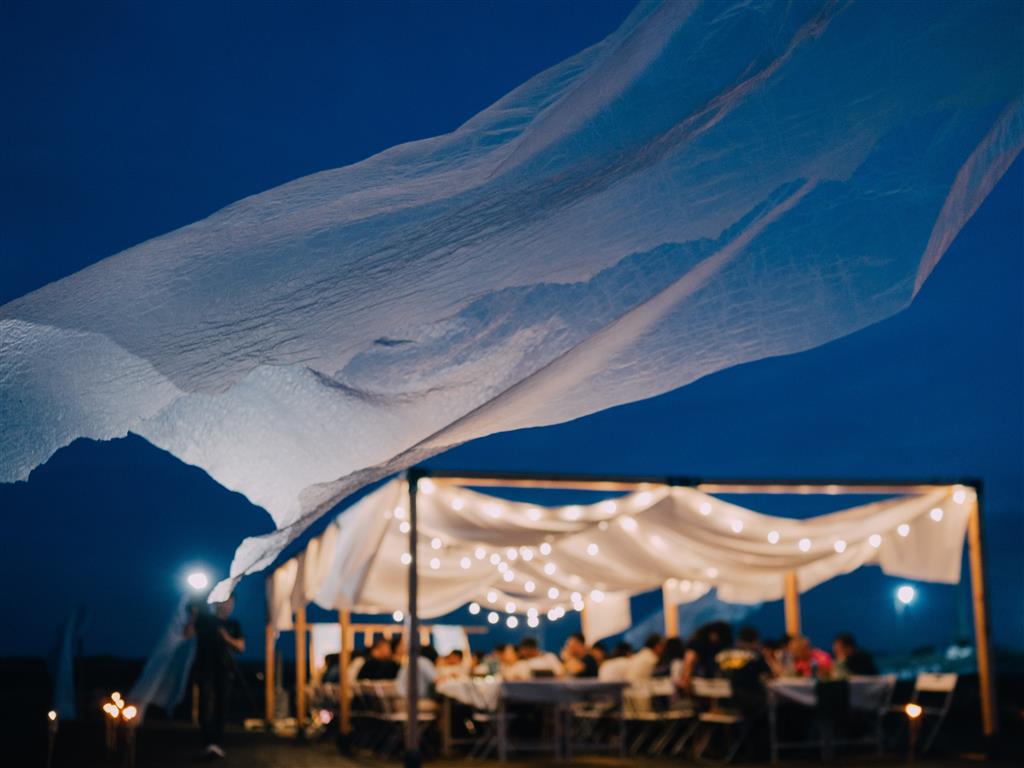 透過青年設計師「二拾家居」、「森一空間」以「風」為元素發揮,創造風的意象,運用在地素材將魚塭打造為絕美、寫意、鬆弛感的用餐空間,並讓在地物產的意象昇華,無視空間、時間限制的視覺效果、白天的風帆肆意飄揚、夜晚的星火閃爍,我們踩在黑色泥土上說著、笑著、聽著、喧鬧著,細細嚐著、感受著這片土地、這些人、這些歌、這些菜餚、這些迷人的風土天然,擁有絕佳的獨特浪漫氛圍,透過經食物設計的餐點,營造高質感的體驗。