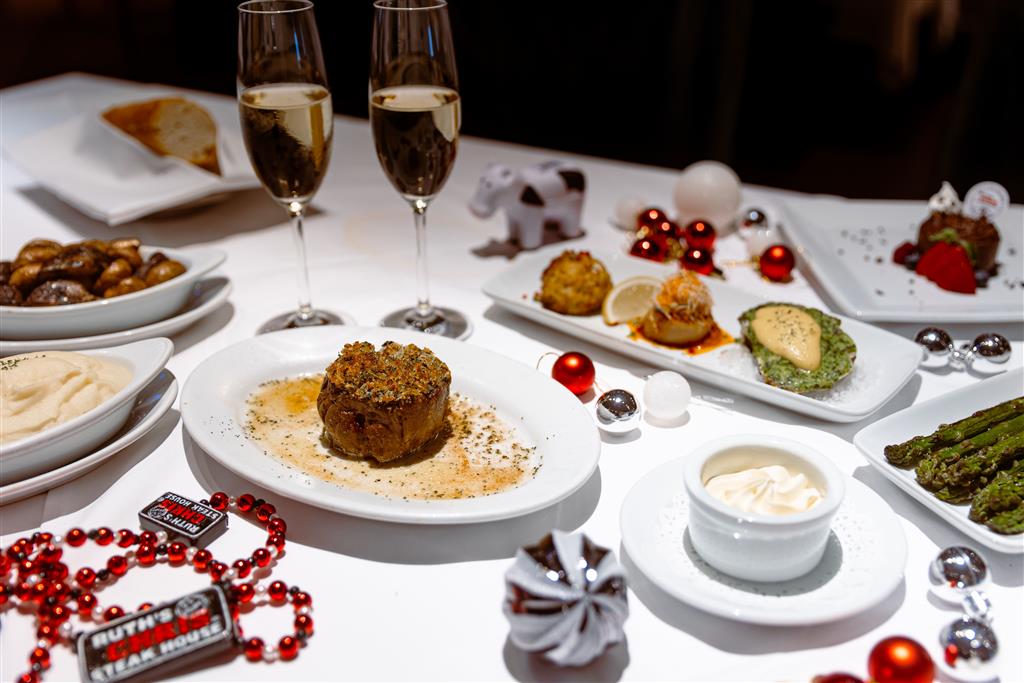 茹絲葵推出60週年紀念套餐,經典前菜組合海鮮三重奏搭配美國菲力牛排佐香酥松露,展現紐奧良美食風味。(圖片來源:茹絲葵牛排提供)