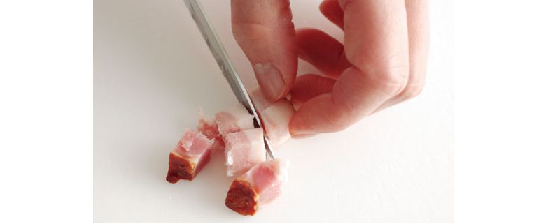 要使用可以切丁的塊狀培根而非培根片,可為口感增加亮點。