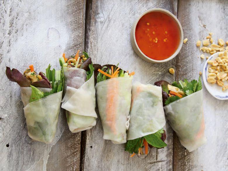Step 6上菜前,把碎花生加到沾醬裡,然後盡情享受吧。做好的野菇卷可冷藏約兩天左右。