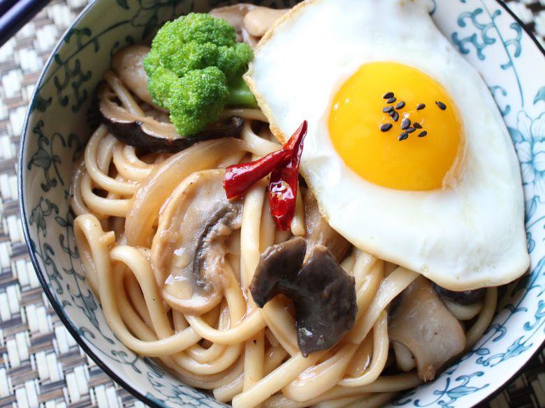 這款洋蔥野菇醬可中可西;拿來做中式拌麵,或是西式排餐淋醬都很適合,簡單的搭配煎太陽蛋,燙青菜,跟涼拌小黃瓜。說真的,老公壓根兒都沒發現餐桌上沒有肉!蔬食也是可以很有魅力的唷!