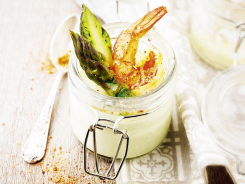 [ 西班牙紅椒風味蝦佐蘆筍奶酪 ]