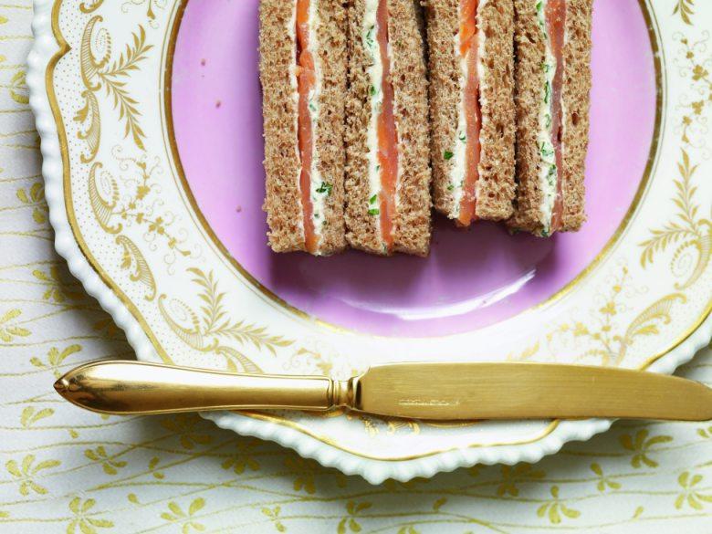Step 3在燻鮭魚上擠上少許檸檬汁。用另一片麵包蓋上後切邊。每份三明治再切成三個手指大小或四個三角形即可。