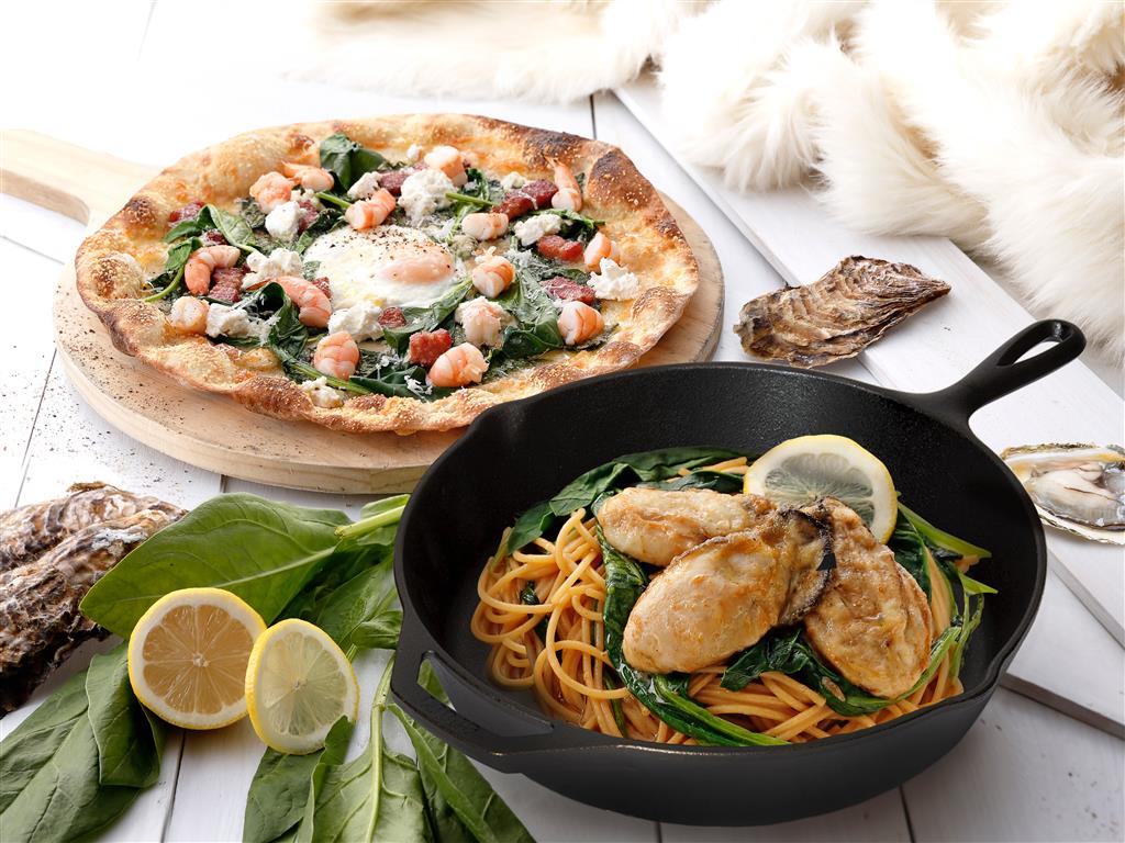 BELLINI Pasta Pasta特別嚴選每年1到3月為產季,尚有「海之牛乳」之稱的廣島縣牡蠣入菜。將三顆鮮甜濃郁、口感柔膩、每顆都水嫩飽滿,與掌心差不多大的廣島牡蠣,表面煎的酥香微焦,將牡蠣的精華鎖在裡面,搭配「冬季蔬菜之王」-菠菜,與主廚以牛奶獨家調製而成的和風醬汁拌炒,並擠上一點檸檬,溫潤濃郁的「廣島牡蠣菠菜和風義大利麵」絕對是今年最適合在冬日享受大海鮮味的餐點。