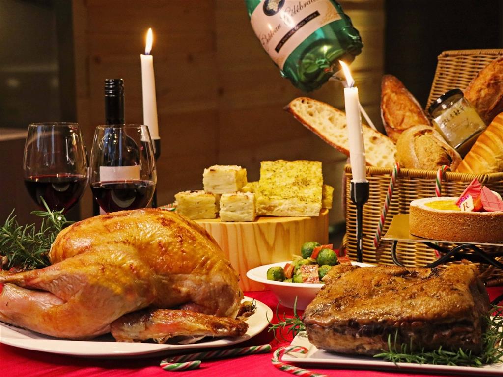 台北士林萬麗酒店士林廚房自即日起至2019年12月25日應景推出「2019 感恩聖誕繽紛歡樂禮籃」,主餐餐點為鮮嫩烤火雞或60盎司爐烤香料紐約客牛排2擇1,提供民眾可依照不同喜好或聚餐需求選擇;附餐包含經典手作鳳梨火龍果及椹果太妃糖果醬、楓糖培根抱子甘藍、焗烤馬鈴薯千層派、南瓜乳酪蛋糕、義式佛卡夏麵包等經典道地料理,另附贈萬麗精選紅酒一瓶以及聖誕糖果組,適合5至8人共同享用。
