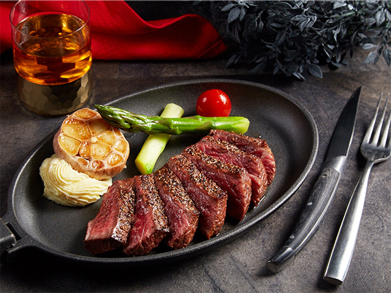 「酥烤牛小排」今年將與您再次相遇,重溫經典美好。帶著微笑送上「酥烤牛小排」,厚實熱騰的鑄鐵盤裡,擺放主廚用心烘烤絕美油花的牛小排,酥脆外層帶著香味誘人的胡椒香,切劃每一塊原汁原味的牛小排,綻放濃郁的牛肉香氣,先嚐原味的鮮甜,感受除取筋膜而更彈牙的肉質,再搭配玫瑰鹽襯托牛小排的滋味。