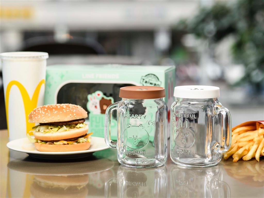 台灣麥當勞整合行銷部副總裁寇碧茹表示:「LINE FRIENDS角色出自LINE貼圖,以親近大眾、引發共鳴的模樣帶給使用者歡笑;而台灣麥當勞致力於提供消費者多元歡樂的用餐體驗,今年與LINE FRIENDS攜手,希望能帶給消費者雙重的歡樂時光;凡購買任何餐飲加價429元,即可獲得最受大眾歡迎的情侶檔熊大與兔兔光雕梅森對杯一組,預計可增加1成的來客數。」