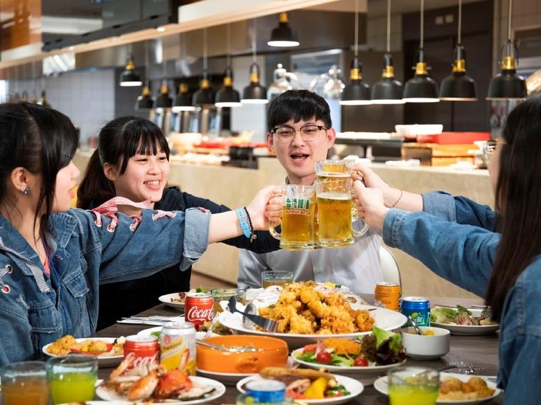 百宴自助餐廳擁有大片落地窗及寬敞舒適的空間,為師生打造輕鬆自在的用餐氛圍,餐檯提供各式異國風味美饌,人氣最夯招牌美國Choice等級肋眼牛排、現點現做「海鮮區」、「日料美饌」及「精緻甜點區」,還有「莫凡彼」、「泰國明果」、「Häagen-Dazs」3種不同品牌的冰淇淋,讓愛嚐鮮的學子大飽口福。家宴中餐廳由行政主廚戴于益領軍,包含開胃頭盤、烤鴨、海鮮、燉湯、甜點及水果共10道美饌,爆漿「奶黃流沙包」細緻柔軟外皮包裹著濃滑奶香,令人吮指回味。