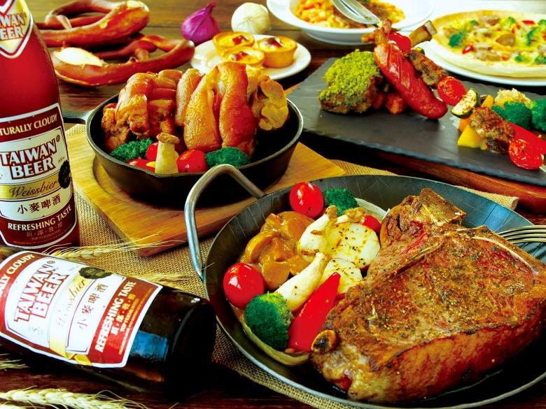 其他主菜另有「巴伐利亞烤豬腳」、「慢慢燉小牛腿、德式小牛肉腸、蘋果紅包心菜」可供選擇,「異品市集」餐檯吧上更有多道開胃前菜、甜點及應景水果可供選擇。2019年6月1日起至2019年7月31日午間及晚間供應之「德國鄉村燒烤美食節」主題套餐每位NT$830~1,100+10%;雙人套餐NT$2,680+10%,點用雙人主餐再加贈台灣小麥啤酒600ml乙瓶(原價NT$230)。