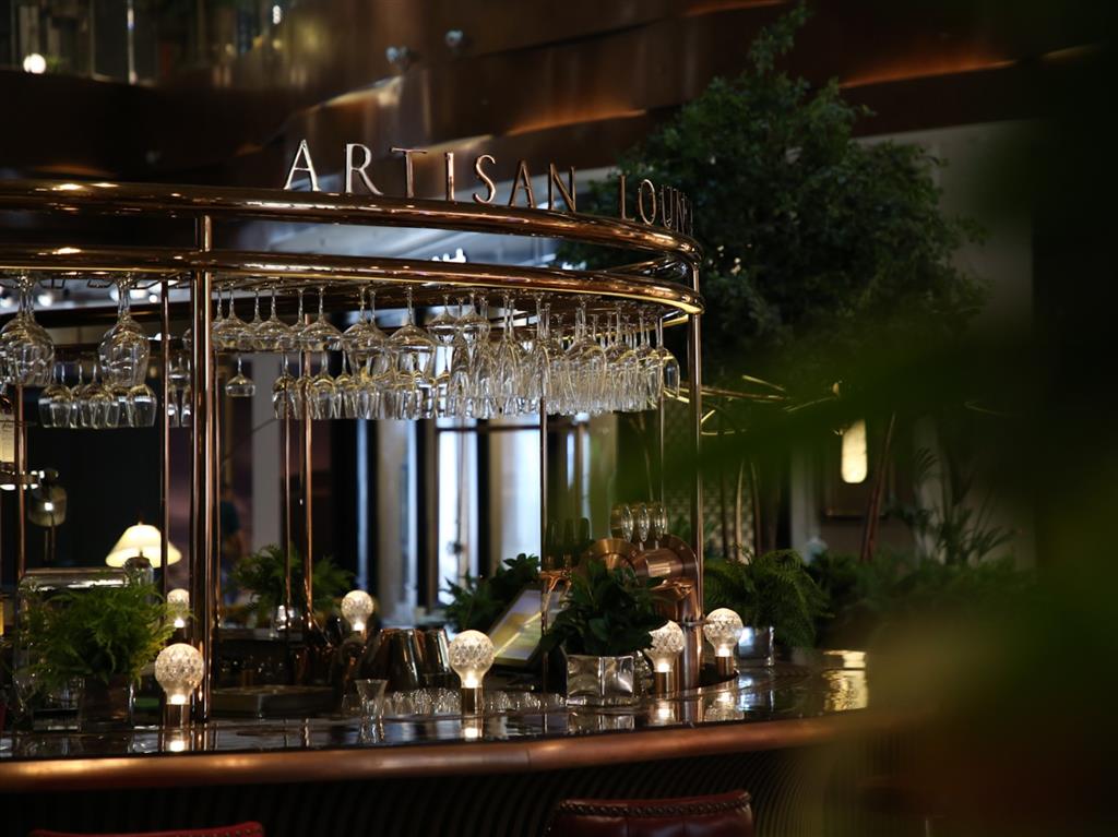 這件猶如有機網絡的作品與場內第2件裝置藝術作品遙相呼應,建立了一場空間的對話 -- Theatre Oculus是一個有機拱頂藝術雕塑,懸掛於中庭33米高的半空之上,其創作靈感乃來自傳統大教堂的宏偉建築。Theatre Oculus是一件「複雜有機的拱頂雕塑作品,希望能令途人停下腳步,相聚其下進行反思」。裝置作品由彎曲鐵枝與玻璃纖維強化塑膠組合而成,覆蓋著中庭2個7米闊的天窗,形成別樹一格的視覺效果。作品的500條「樹幹」經電腦設計,因此每條無一相同,數以百計的燈光點綴整件裝置,根據電腦程式緩慢閃爍,產生有若催眠治療的動態效果,營造彷彿置身於自然光線的舒適環境。室內設計再延伸至店舖之上的有機天花裝置,並以銅色不鏽鋼製成的紅酒架分隔酒吧區域,特別引人入勝。LAAB Architect創辦人吳鎮麟表示:「Artisan Lounge的設計別具心思,迸發靈感魅力,期望能為各位來賓帶來無限驚喜與歡樂,匠心獨運的設計,處處展現個人風格,為此文化新地標增添獨特的創意藝術空間。Artisan Lounge 結合了體驗式零售與時尚文化藝術元素,並保留了大量綠色空間,自然與文化相互交融,更添一份對大自然的尊重。」