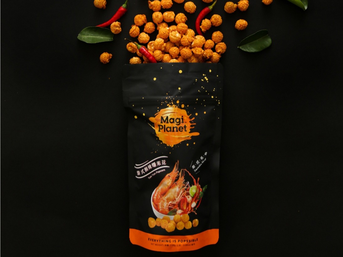 瞄準夏季零食商機,Magi Planet星球工坊針對炎熱夏日推出「泰式酸辣爆米花」,將泰國的代表料理TOM YUM冬蔭湯化為零嘴,呈現酸辣帶勁的異國風味,為消費者帶來味蕾上的新刺激!