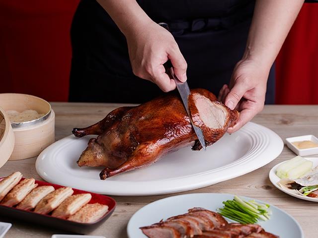 每年情人節總是鮮花配西餐,想不到要給另一半什麼驚喜?今年到享鴨讓他(她)耳目一新!首店位於台北市忠孝敦化商圈的享鴨,提供明星商品招牌片皮鴨半隻的選擇,主打兩人也能輕鬆吃烤鴨!一次品嚐「鴨皮蘸白糖」、「鴨肉佐油封蒜泥」、「經典鴨肉荷葉捲餅」三種特色吃法。