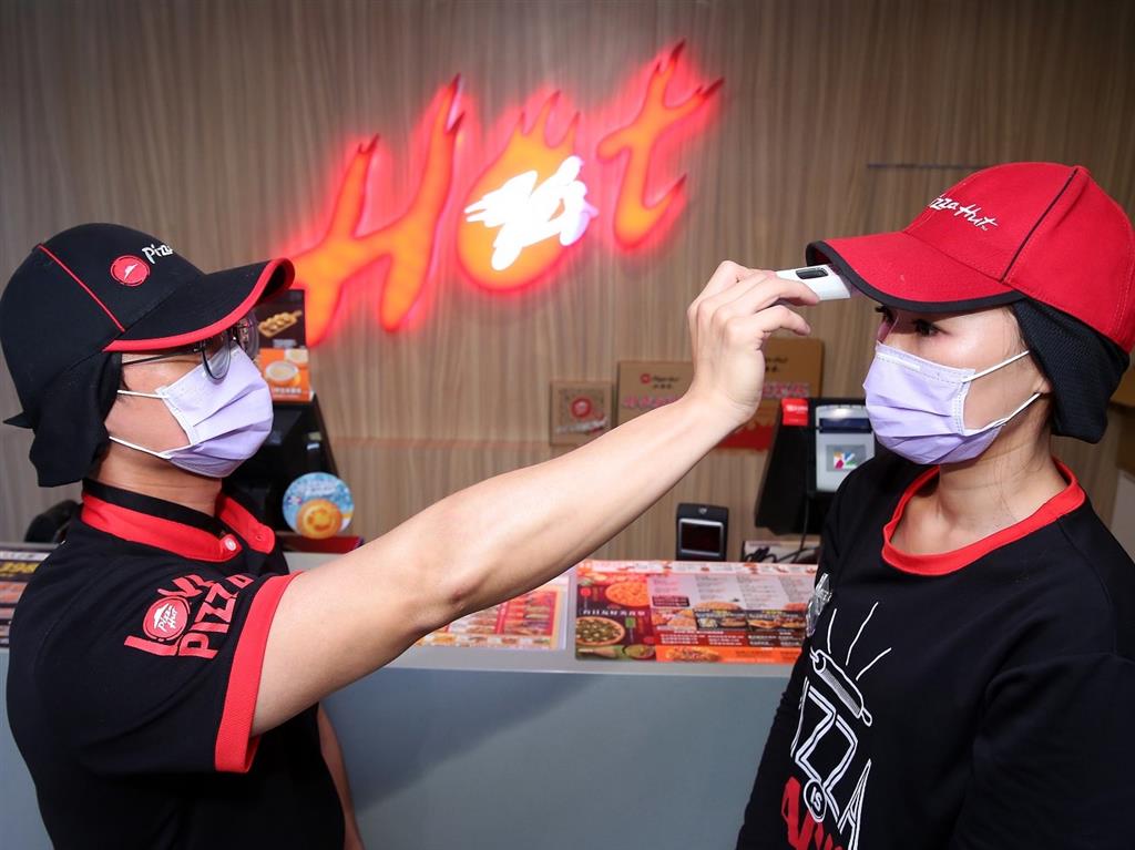必勝客長期深耕外送比薩市場,全台擁有千位經專業訓練的外送員,以高標準嚴謹執行清潔作業及員工衛生健康管理。防疫期間,更啟動「安心送」防疫SOP:包含每日確實測量體溫不得超過37.5度,員工上班期間全程配戴口罩,門市每小時消毒相關烹調器具、菜單、自動門等,確保員工及消費者來店衛生安全: