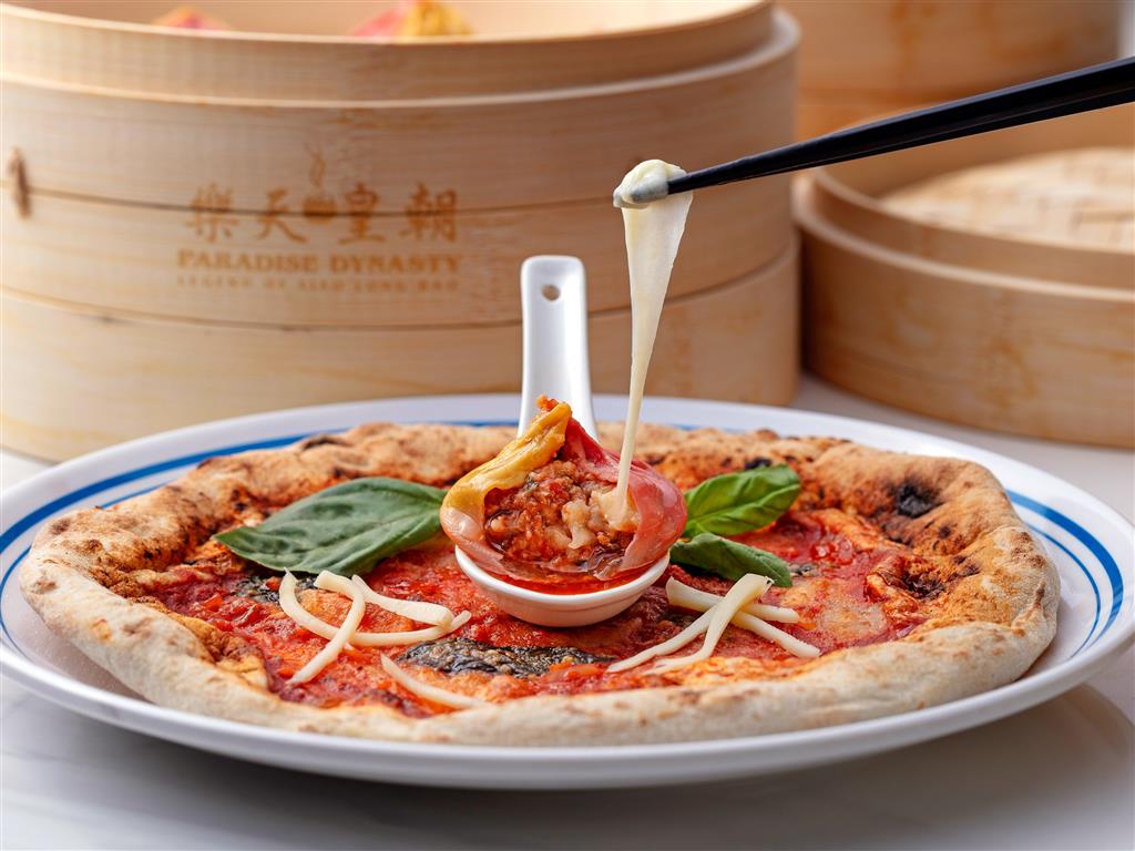 聯名合作研發披薩小籠包,由中西代表料理撞擊出全新的味覺體驗。(圖片來源:樂天餐飲提供)