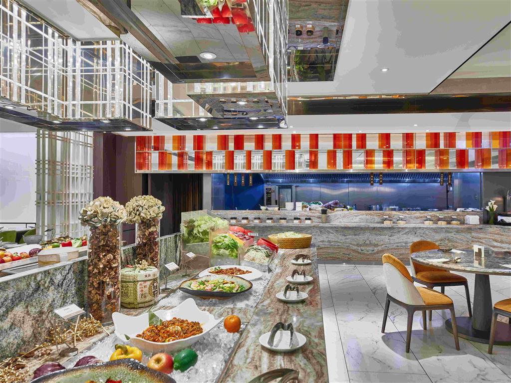 「朋派自助餐廳」餐檯區分為6大美食區,「開胃菜與沙拉冷檯區」供應多款特製冷菜及各式新鮮蔬果,如現拌泰式青木瓜沙拉、炸蛋沙拉、泰式涼拌魚皮等。「現作鐵板/煲仔/主食區」除了提供台式肉燥麵、海鮮湯、現燙季節蔬菜、現煎US PRIME等級牛排等。「精選熟食熱鍋區」以泰北椒麻雞、清蒸檸檬魚、泰式炒河粉、泰式蔬食咖哩、照燒雞腿等輪番上陣。「鮮美時令海鮮區」則是維持熟客喜愛的當季螃蟹、白蝦、淡菜、現切生魚片、現握手捲及日式冷菜等東方經典料理。「火鍋DIY」供應麻辣/昆布湯底涮涮鍋可盡情自由搭配食材變化;「甜點飲品歡樂吧」入廳即見的異國甜食天堂,現烤蘋果酥、焦糖布蕾、檸檬塔、水果鮮奶酪、各式冷熱飲品、莫凡彼冰淇淋等任君挑選,以及新推出逐桌位上現烤義式手工披薩,為饕客們增加更多美好享食體驗!