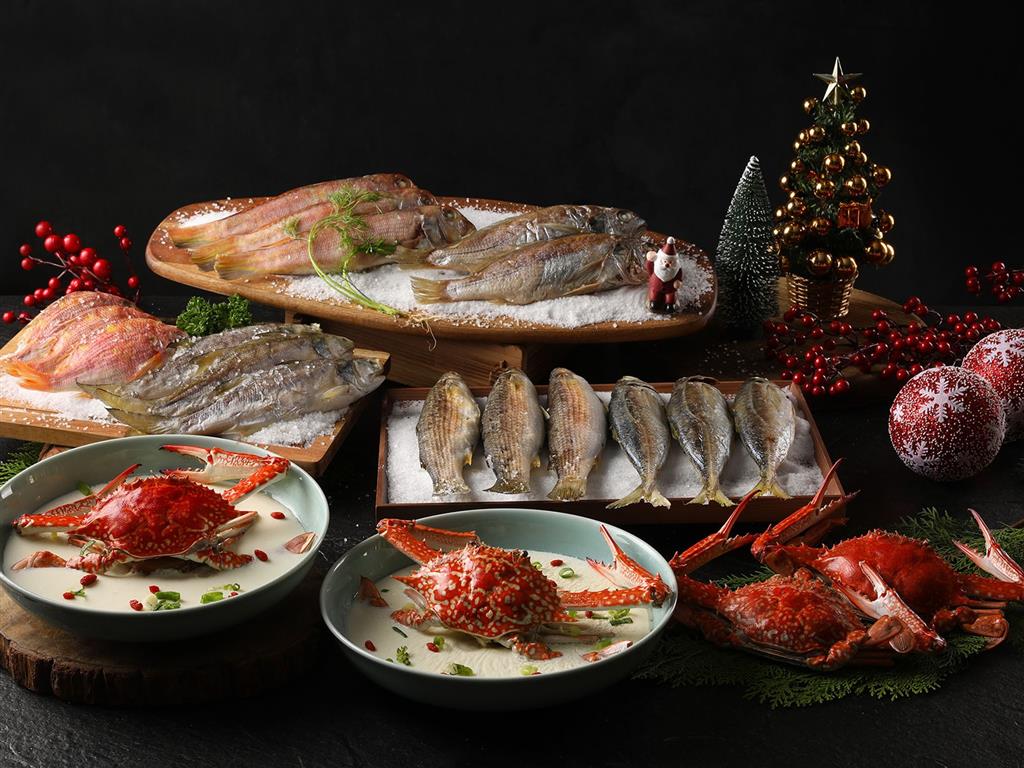 此外,備受歡迎的餐檯還包括生猛海鮮吧、現流生魚片、現煮熱湯區、以及爐烤美國自然牛,配合歲末節令的特色美食則有花雕蛋白蒸花蟹、紅糟豆醬滷豬腳、豉油王海鮮炒麵、檸汁大章魚番茄沙拉、白酒蒜香淡菜、紐澳良肉汁燴豬棒腿、香煎比目魚佐野菇奶油醬、紫茄鮮蝦青醬義麵、迷迭香嫩烤雞腿…等;五彩繽紛的甜點水果也一字排開,除了經典必吃的法式焦糖布丁、德式黑森林蛋糕、千層卡士達、義式提拉米蘇,季節限定的耶誕樹幹蛋糕、草莓慕斯林、和紅豆抹茶巧克力塔,也一定要嚐!