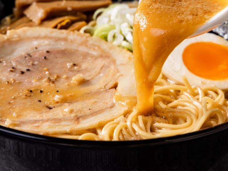 以大量大蒜、優質拳骨長時間熬煮成大蒜拳骨湯頭,經典辛香蒜粒、黑胡椒,可依個人喜好加入,能讓整碗拉麵的濃郁香氣直達雲霄,快煮2.5分鐘零失敗的魔術料理,立即上桌!
