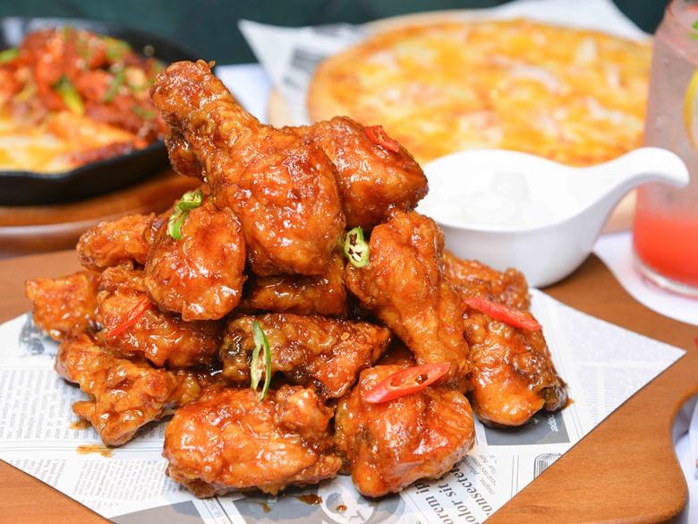 bb.q CHICKEN因人氣電視劇《孤單又燦爛的神-鬼怪》在台灣爆紅、成為韓飯們追星必吃的道地韓式炸雞!2018年全家便利商店在台試賣獲得熱銷好評!瞄準此熱銷風潮同時看好韓風商機可期,bb.q CHICKEN旗艦餐廳擴大餐點類型推出50道的經典韓食料理,包含原料直輸,堪稱最道地的韓式料理如韓式鍋物、拌飯等;此外還有韓式洋食「湯匙披薩」香熱入口、「柚香鮮蝦披薩」清爽完美風味,而熱銷的招牌bb.q黃金炸雞主打清爽酥脆口感,首度現身於台灣的「甘醬炸雞」預期將成為瘋賣款的人氣選擇,另有多款浮誇系調酒佐餐,演繹出新潮的韓式餐酒館風格。