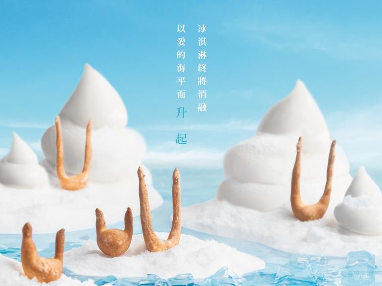 透過快速消融的冰山、與在破碎冰層上的動物的意象,要更深刻的呼籲「冰淇淋終將消融,以愛的海平面升起」,希望大家一起通過更友善環境的選擇,讓消融的是冰淇淋而非極地冰層,融化的是內心的愛而非全球海平面。