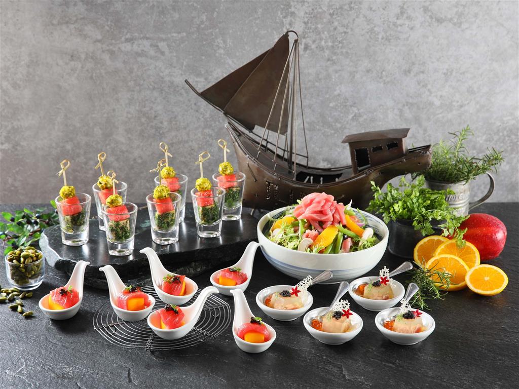 活動期間,除了生猛海鮮吧、人氣日料區、炸物燒烤區、還有備受歡迎的爐烤美國牛肉、和現點現炒的義大利麵檯區,此外,中西熱食也是琳瑯滿目,亮點菜色包括以時令綠竹筍烹製的金沙雙筍、和風雙鮮竹筍煎餅、和假日供應的竹筍花雕雞,外加酒香蒸蝦、蜜汁豬肋排、普羅旺斯牛肉丸、紅糟豆醬滷豬腳、清蒸時魚等,佐餐良伴還有無限暢飲的冰鎮台啤,保證吃喝盡興。