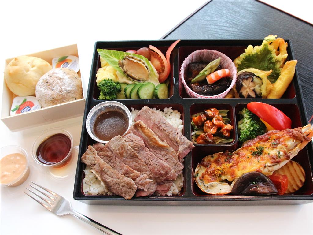 西點輕食則有「鹽可頌」、「野莓起司麵包」、「歐式麵包」、「法式松露南瓜湯」。此外,五星便當全新菜色登場,可選擇中式或西式,中式雙主菜提供秘滷牛腱、照燒嫩雞腿、酥炸香料鮮魚、蒜蒸海大蝦4選2;西式主菜則為嫩煎雙重起司牛肉漢堡排(8oz)、爐烤夏季黑松露豬肋骨、紙包普羅旺斯風味海鮮鰈魚、澳門式薯仔葡汁炆雞腿排4擇1。極品便當同樣可選擇中式或西式,中式雙主菜提供秘炙豬腱骨、紅酒慢燉牛小排、醬燒海虎蝦、醬烤松阪豬4選2;西式主菜則為嫩煎肋眼牛排、焗烤小龍蝦雙拼。