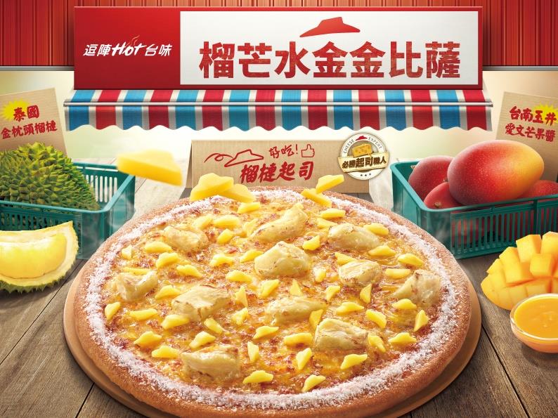 台灣素有「水國王國」的美譽,台南玉井愛文芒果更是台灣人夏季必吃的熱門水果。這次必勝客特別將台南玉井愛文芒果,融入經典話題性比薩─榴槤比薩,創作出升級版「榴芒水金金比薩」!