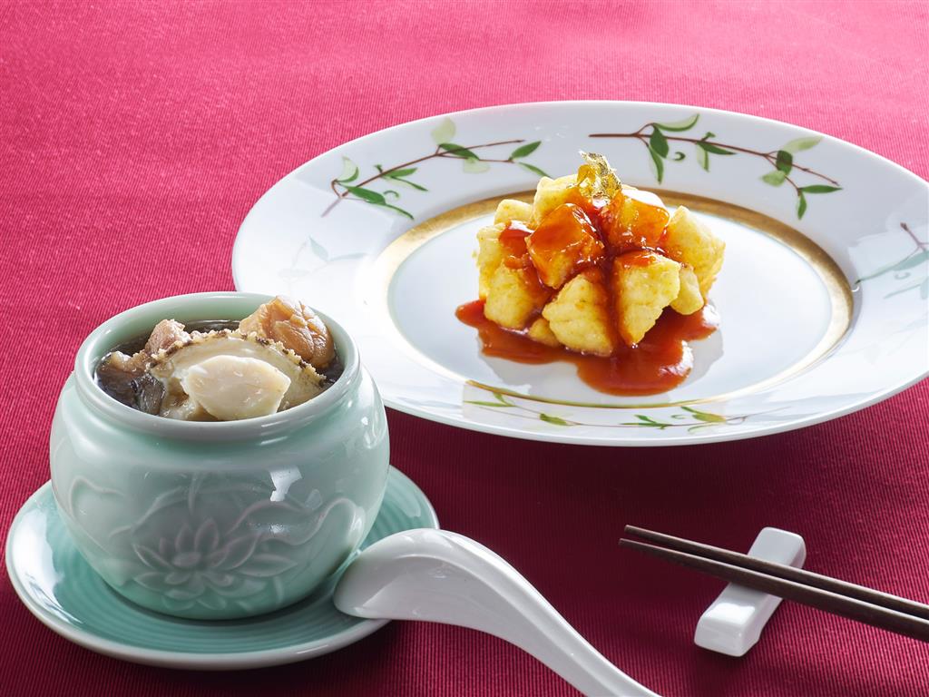 一盅「枸杞燉九孔」,濃縮了大稻埕裡南北貨商通路的繁華與沒落,道盡了歷史興衰,卻也燉煮出了大稻埕在台北象徵性的濃厚滋味。主廚以豬大骨與老母雞為基底,添入藥材、子排、干貝、栗子一同蒸煮90分鐘,待上桌前放入燙熟九孔,再入蒸籠約10分鐘吸取高湯精華,使九孔嘗來鮮嫩又不失嚼勁,湯頭的淡雅中藥香氣,更讓人彷彿置身大稻埕,漫步櫛比鱗次的南北貨商行騎樓下,嗅著空氣中隱隱飄出的乾貨與藥材香氣。