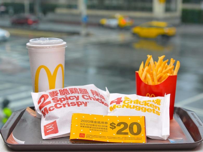 2020年5月28至5月31日,凡至麥當勞餐廳購買任何餐飲(不含醬包),即贈送麥當勞「現金抵用券」乙份,內含麥當勞、屈臣氏、amba意舍酒店之抵用券,送完為止。不適用於麥當勞歡樂送。