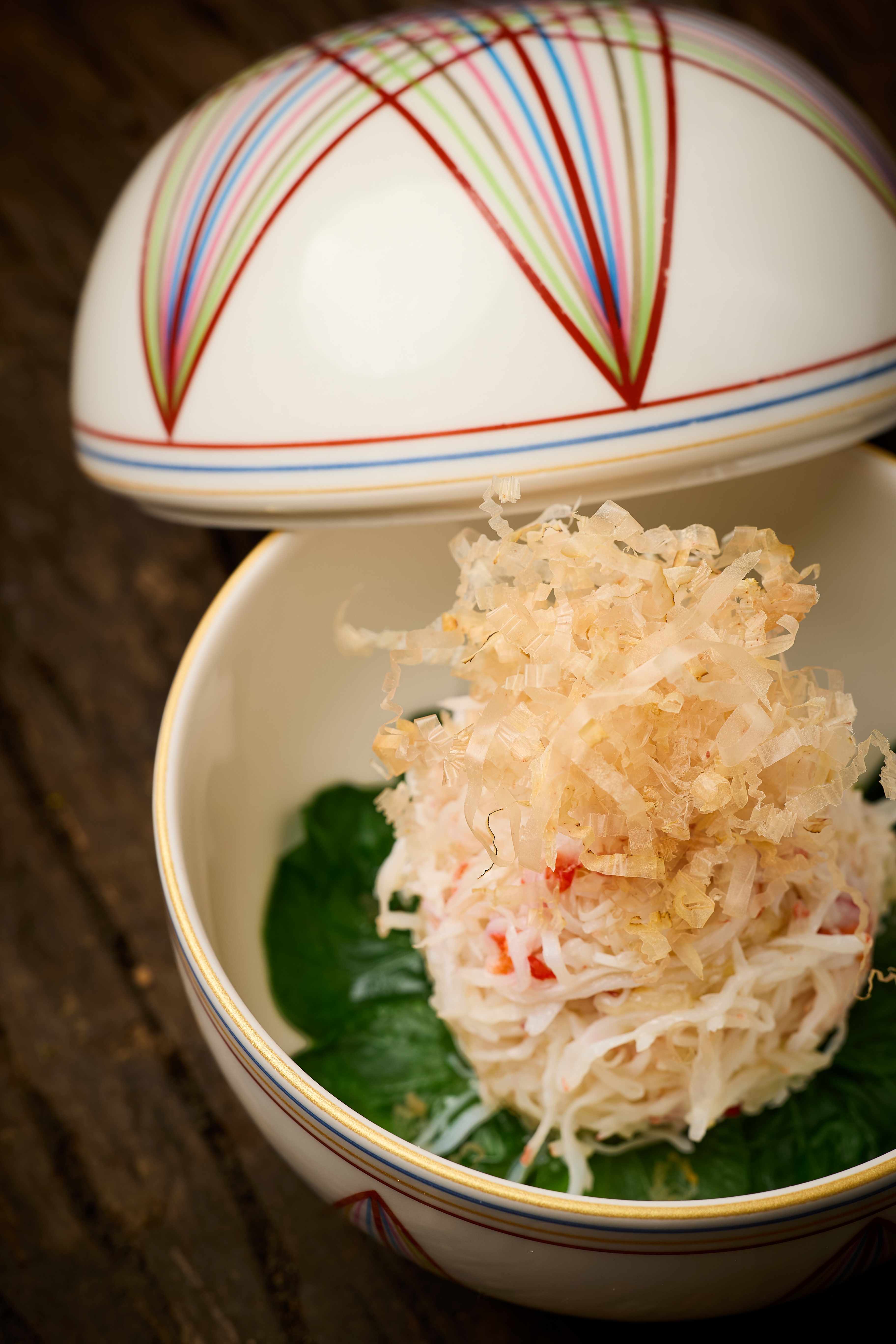 靈感來自古法「雪藏」。馬鈴薯在低溫自然增甜,與松葉蟹真丈的鮮味疊加,風味極度細緻。