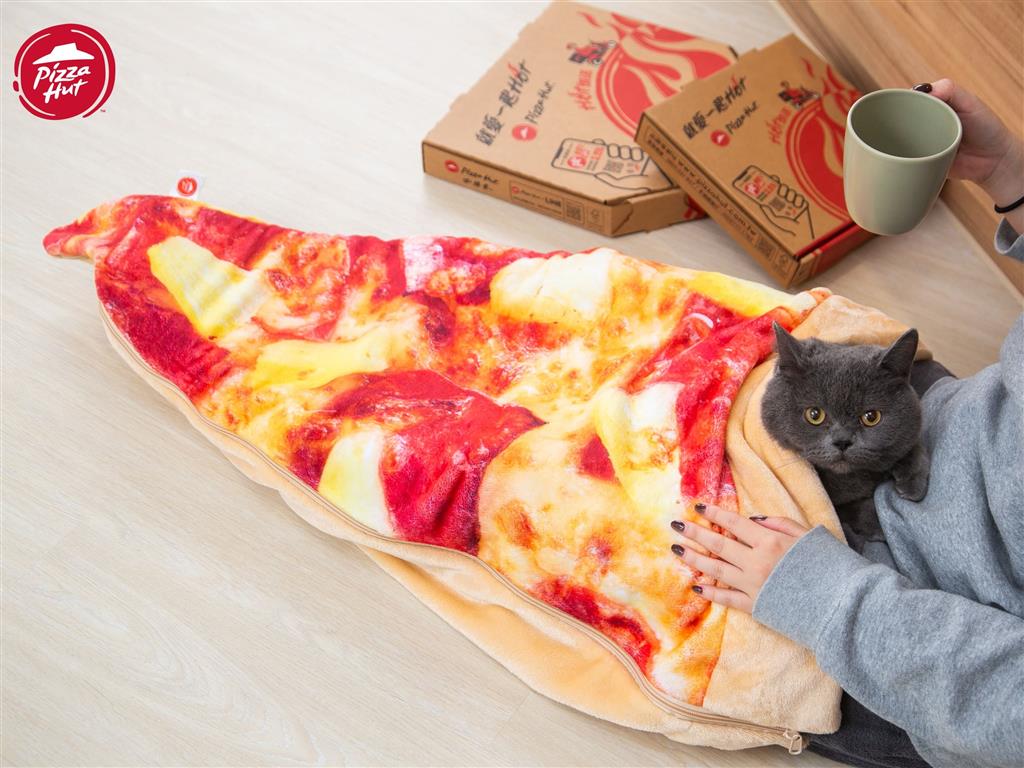 必勝客推出最新暖冬神器「比薩造型睡袋」,將人氣口味夏威夷比薩等比例逼真放大,並搭配超柔軟法蘭絨材質,保暖效果滿分,還能與毛孩們一起鑽在被窩中,溫暖又療癒。