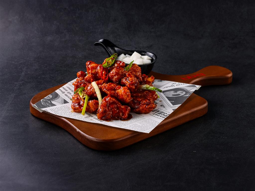 「江南醬燒炸雞」是一款在韓國非常受歡迎的炸雞口味」靈感來源自韓國江南區的時尚與美食文化,將當地流行的醬燒風味精心調配帶入台灣市場,以濃郁醬香、微辣甜鹹的風味著稱,韓式辣椒醬為基底搭配蜂蜜平衡甜辣口味,以及醬油和蒜頭提升醬汁的鮮味,最後在爐火上持續加熱至湯汁收乾,只剩精華濃稠醬汁,這樣能夠均勻裹住炸雞的每一面,確保每一口都充滿甜鹹香味!不論是韓國本土還是國際市場,此口味均獲得高度評價。