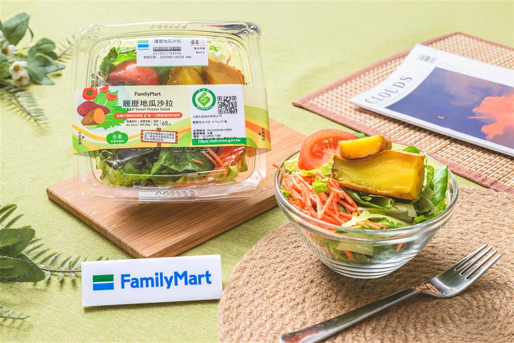 此外,「全家」更推出便利商店首創「有身分證」的鮮食「履歷地瓜沙拉」,全食材嚴選產銷履歷驗證之優質農產品,外包裝更印刷專屬之產銷履歷,不僅清爽無負擔,更安心可溯源,包括香甜番薯、清脆爽口的蘿蔓、鮮嫩牛番茄、歐式生菜,讓消費者飲控之際,亦能享受有故事的美味,售價65元。