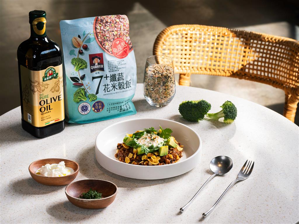 小小樹食人氣主食絲綢起司墨式蕃茄燉飯升級使用「桂格免浸泡7+纖蔬花米穀飯」,以多穀種子取代白米,全面提升膳食纖維、口感層次更豐富。穀香與墨式蕃茄風味、絲綢起司交織出濃郁但不膩口的獨特風味,再佐以「得意的一天純橄欖油」,溫潤香氣中帶出食材原味,打造低油卻不失飽足感的清爽主食,滑順又豐富的口感,每一口都能吃進滿滿的膳食纖維。