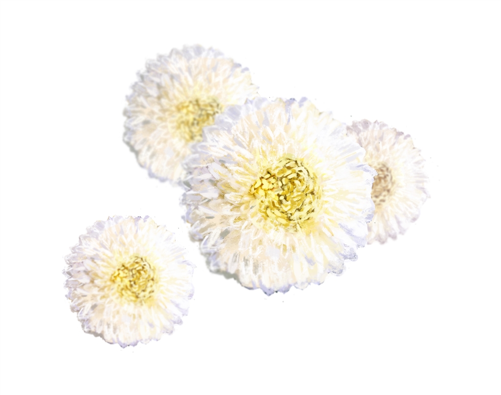 醫書《本草便讀》說菊花:「平肝疏肺,清上焦之邪熱,治目祛風,益陰滋腎。」對於清熱解毒、眼神明亮,都有療效。選用上,若為了疏散風熱多用黃菊花,平肝明目則用白菊花。是挑選天氣好的時候,將菊花採摘下來烘乾脫水。四公斤的鮮花,只能製成600克的乾菊花。