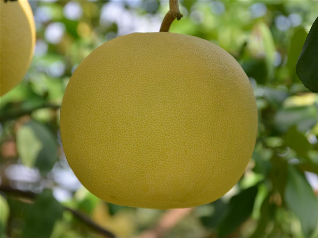 2021年大白柚果實生長期間雨水及日照充足,果肉充實飽滿、風味及口感美味誘人,目前已陸續進入採收期,台南區農業改良場提供選購要訣:1 外觀及色澤:果皮外觀光滑、油胞分佈均勻,色澤呈黃綠至黃色。2 形狀:果實形狀呈圓球或扁球形,要勻稱、不歪斜及尖頭。3 重量:果實要有沉重感,代表果肉豐厚、水分較多,重量約1~2公斤左右最佳