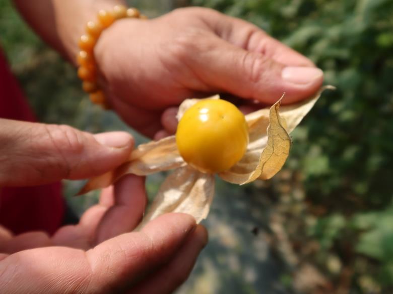 台南場場長楊宏瑛說明,酸漿為茄科酸漿屬(Physalis)草本植物,廣泛分布在溫帶和亞熱帶地區。果實包在花萼內,外型像個燈籠,因此俗名為「燈籠果」。其中祕魯酸漿(Physalis peruviana;Cape Gooseberry)果實金黃色,又稱為「黃金莓」,是目前消費市場主流。酸漿的用途與番茄相似,可以直接食用或者製成沙拉、甜點、果醬、果凍、調味品。