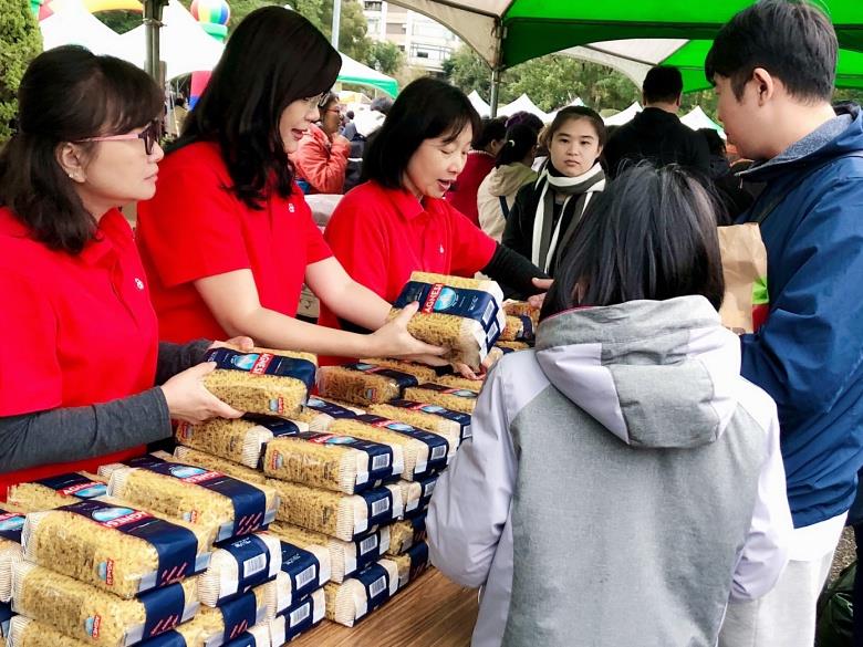 台北家扶中心謝曉雯主任至攤位感謝開元食品捐助愛心物資(圖片來源:開元食品提供)。