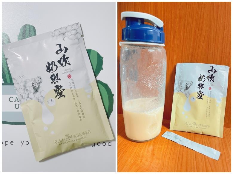 「RAF漢方乳清:山吹奶與蜜」加入水或牛奶沖泡後即可迅速飲用,試吃會員表示味道上蜜味充足,藥材味反而不明顯。(圖片來源:食驗室體驗分享圖)