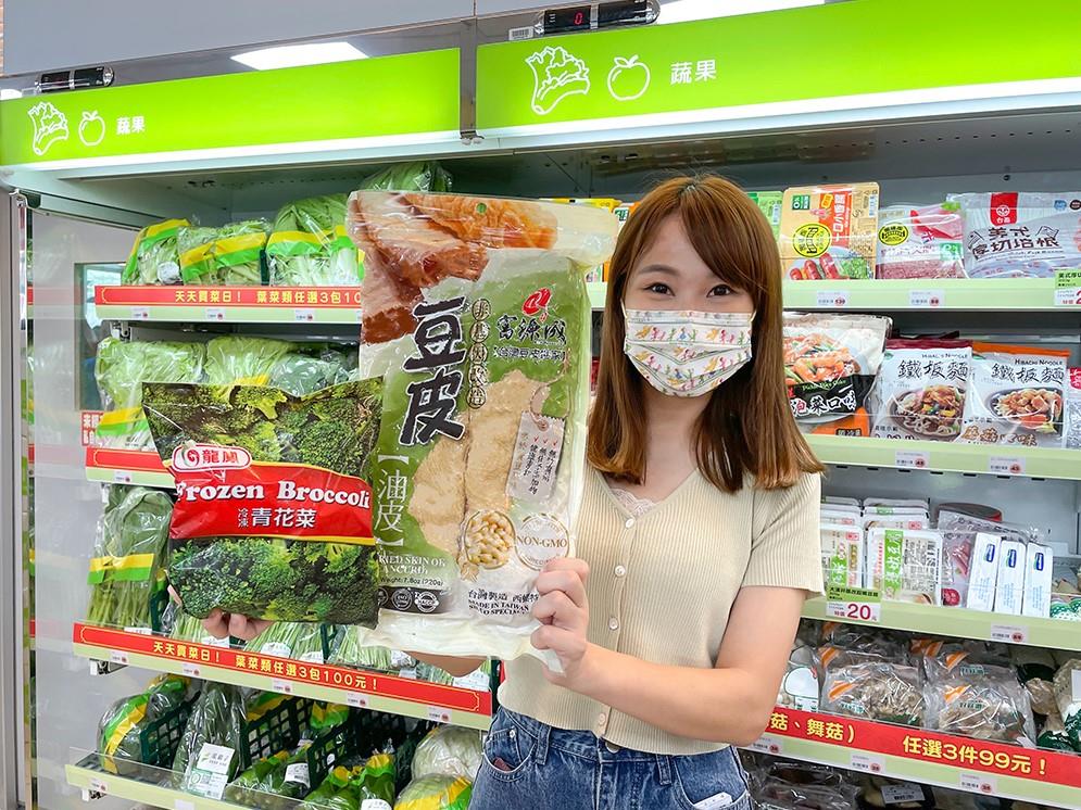 除了無蛋奶麵包的選擇之外,「萊鮮生Mr.Hi」全店提供逾千項的超市商品中,就提供逾1成的素食商品,如龍鳳系列的冷凍毛豆仁(全素)、冷凍青花菜(全素)以及冷凍三色綜合蔬菜、義美素食炒飯(全素),還有近百種產地鮮直送的菜霸子生鮮蔬果,以及全素的休閒食品,如麻辣杏仁腰果(全素)與58巴蜀椒麻花生(全素)和阿甘薯叔地瓜脆片(全素)。