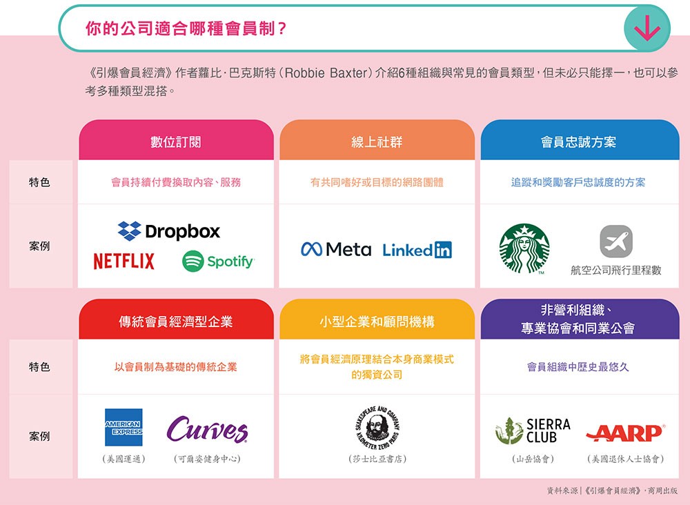 6種常見的會員制度類型,可依組織特性選擇轉型目標。(圖片來源:經理人提供)