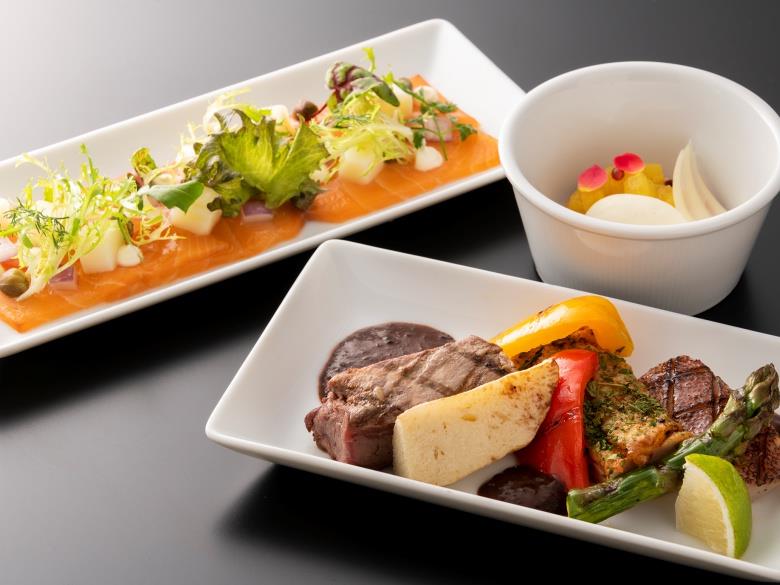 7月份菜單則是以「Robin’s 鐵板燒」的料理出發,因應夏季炎熱、主廚特以時令海鮮—蝦子、淡菜,創作可口開胃前菜「海鮮沙拉」,主食則是搭配柔嫩的鐵板牛小排、清爽甜美的干貝及新鮮的紅鰷,附餐搭配上法籍主廚食譜特製之「法國麵包」,最後則以經典西式甜點—「提拉米蘇」收尾,期待讓旅客一次品嚐到頂級西式鐵板料理。