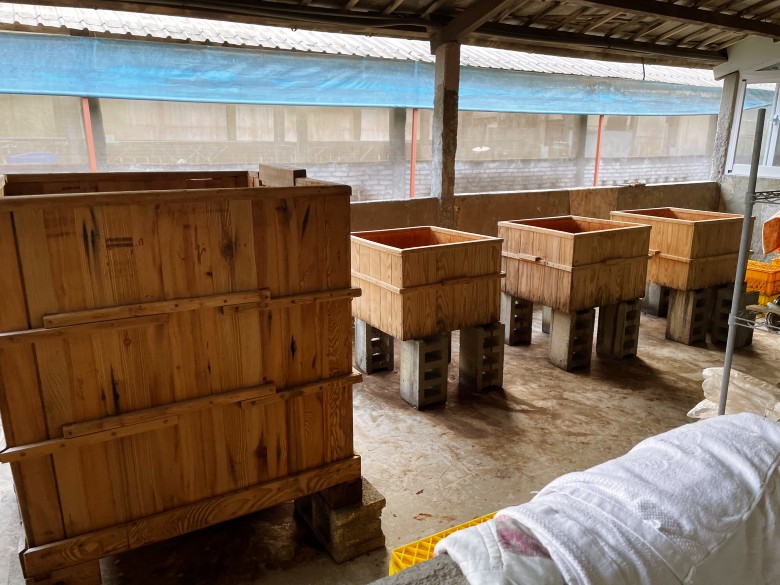 將可可果肉取下,置於發酵箱中。(圖片來源:宏亞食品提供)