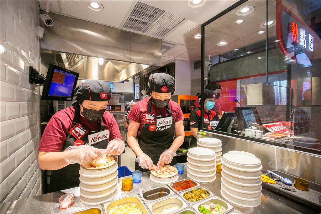 為了滿足上班族、學生外食需求,必勝客全新打造的「Hot燒站」,全球第一間門市在台北開幕!現點現烤5分鐘就能帶著走,還能從透明廚房看見手工比薩的烘烤過程!