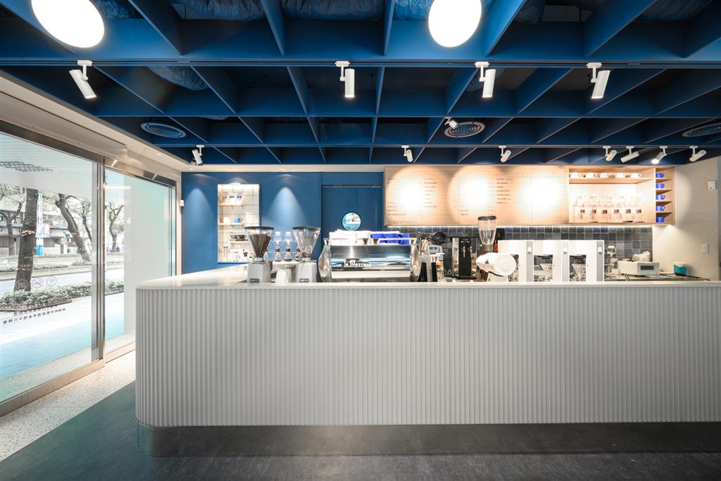 曾於2020年為Let’s Café設計全新深藍色系的品牌視覺的IF OFFICE馮宇團隊,將Let’s Café PLUS的品牌Logo以PLUS符號融合咖啡豆負空間圖樣,強調質感升級、咖啡豆香氣四溢的意象;空間設計則邀請曾操刀多間星級飯店、人氣餐廳的有靚設計團隊,透過不同材質的藍色與淺色木紋,再輔以金屬元素點綴,營造自然質感的舒適氛圍,更利用大片落地玻璃窗提升店內採光、引進中山北路上的綠意,打磨出自然質感的舒適氛圍;店內夥伴身著的藍色制服圍裙,則邀請享譽國際的服裝設計品牌APUJAN詹朴設計,以冰滴咖啡滴落、時光流逝為概念,搭配象徵專業升級的PLUS符號,充分展現品牌對於細節一絲不苟的堅持。