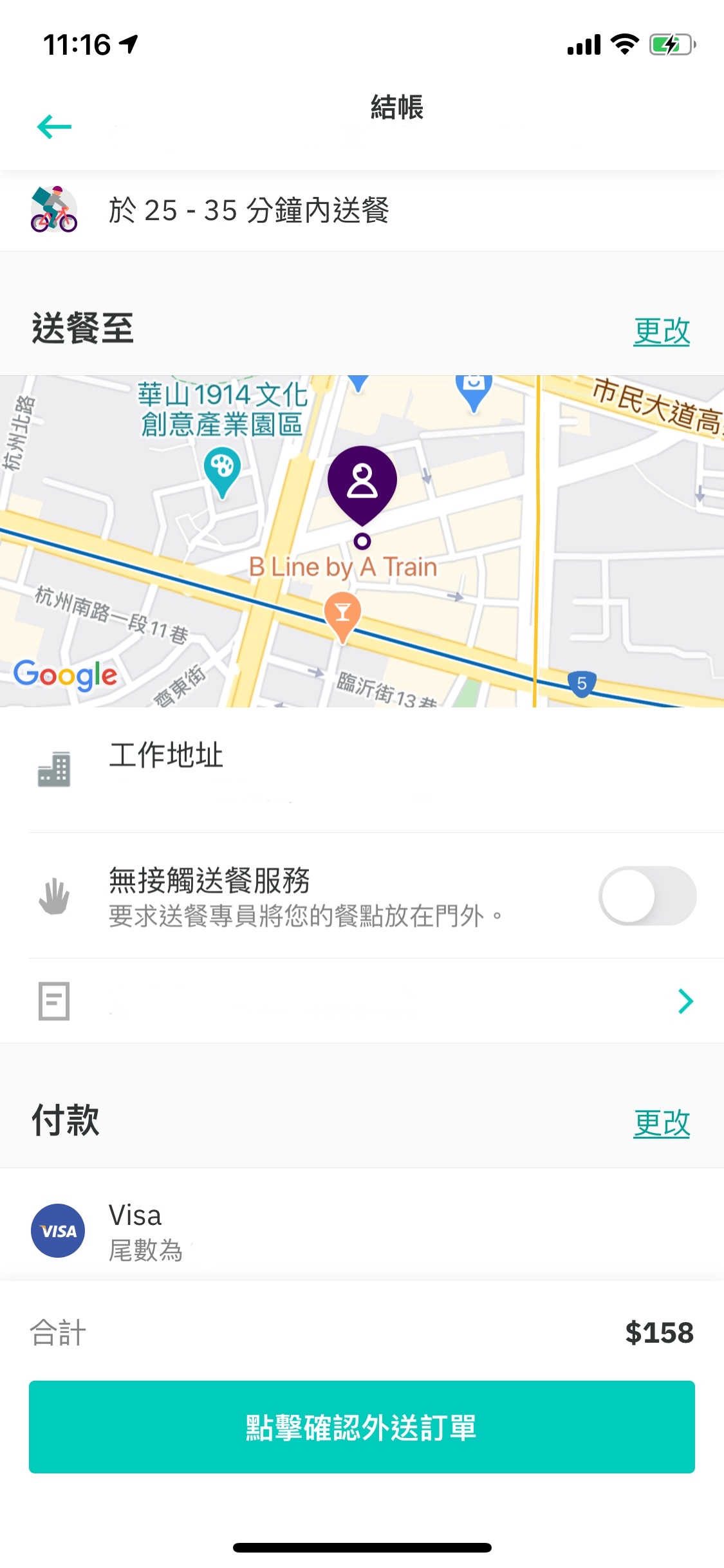 1、消費者在結帳時可選擇「無接觸送餐」,這個訊息將發送給外送員,讓他知道要將餐點放在消費者指定的地方,而非直接按門鈴等待消費者開門。