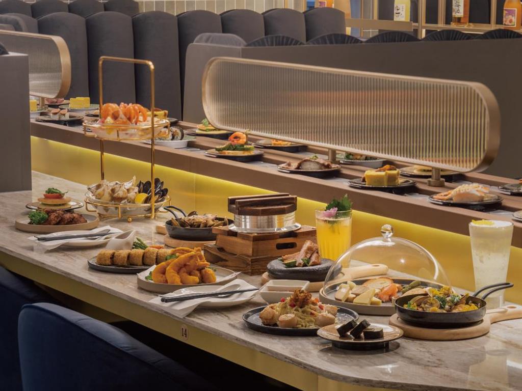 爭鮮集團更指出,Sushi Bar 室內設計與「向室製作」一同合作,運用曲線呼應迴台的流線設計,營造視覺上的柔和美感,階段性燈光層次堆疊凝聚客人用餐氛圍,翻轉大眾心中既定的迴轉壽司印象,更是聚餐小酌新選擇。邀請全國美食吃貨相約到「樂鮮Sushi bar」來一場微醺體驗。