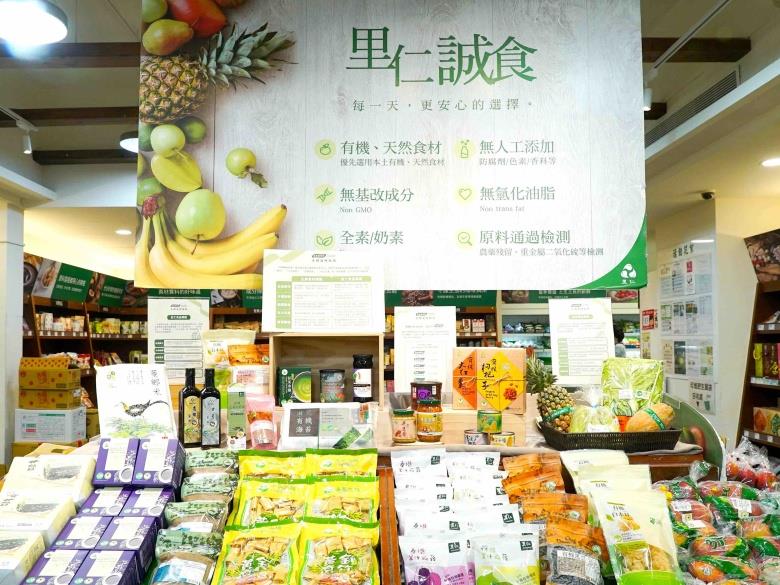 「里仁自創立以來就鼓勵農友採用有機方式種植蔬果。為了落實減碳,里仁只提供無肉蛋海鮮成分的蔬食,同時也號召食品加工夥伴優先採用本土食材,盡量減少加工層次、盡可能不使用化學添加物,努力在食材與食品供應鏈上實踐『支持在地、提高台灣糧食自主率、減少食物里程』的永續行動。」李妙玲表示。